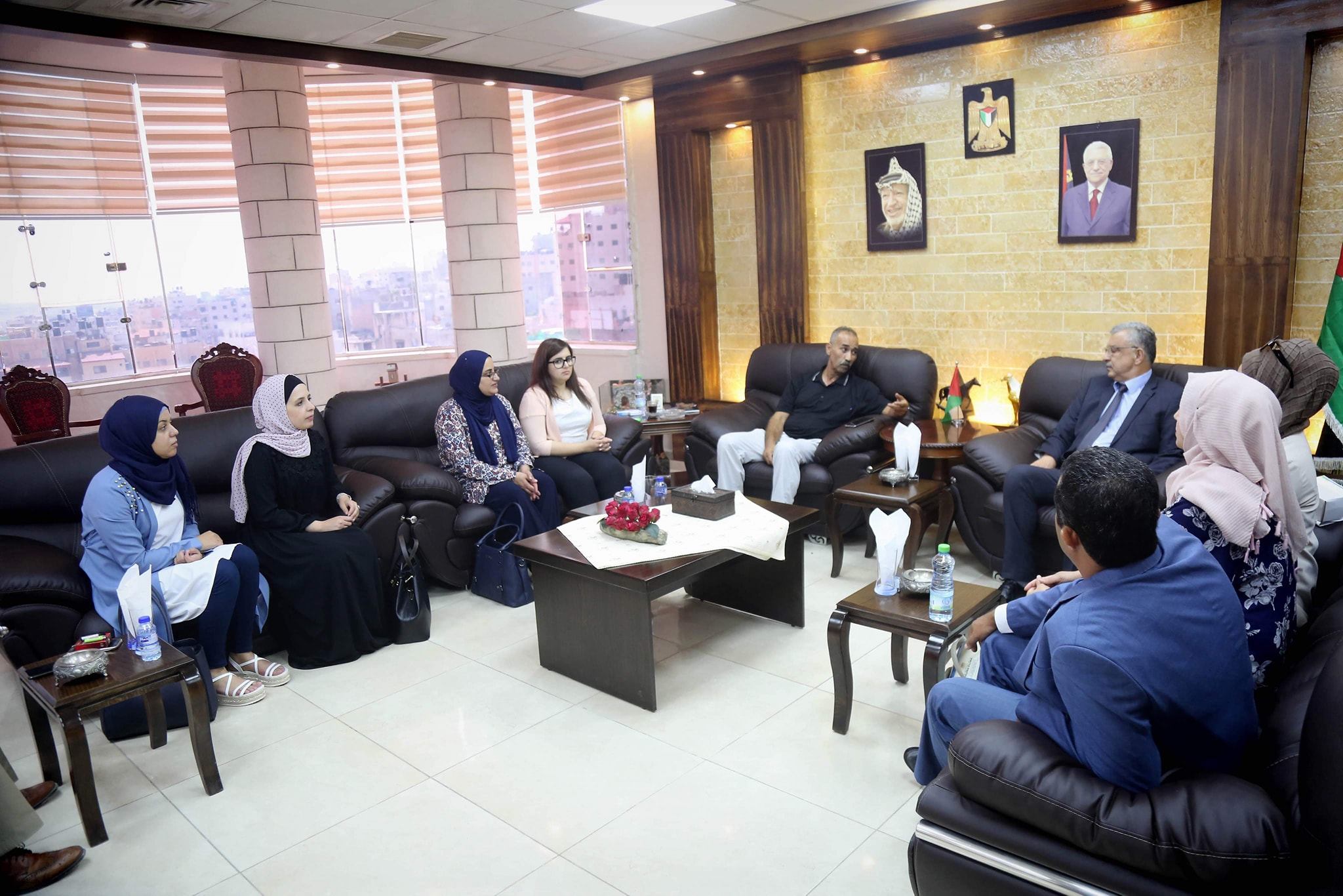 محافظ طولكرم اللواء د. كميل يستقبل وزيرة التنمية والإغاثة د. حمد ويناقشان مجموعة من القضايا