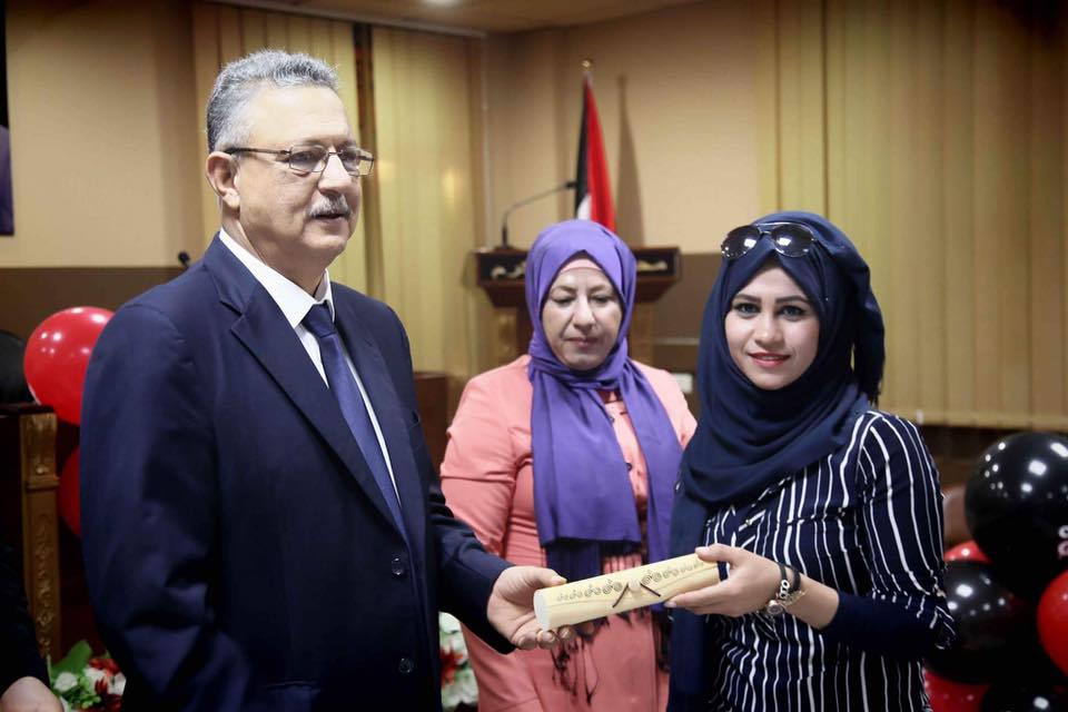وفي نهاية الاحتفال قدمت المشاركات درعاً تكريمياً للمحافظ ابو بكر، تاكيداً على دعمه ومساندته لهن، معبرات عن شكرهن لدائرة المرأة والطفل ومركز المناهل على ما قدموه من جهود لانجاح التدريب.