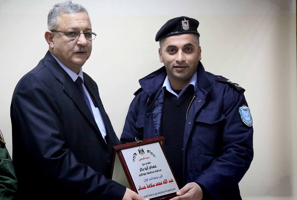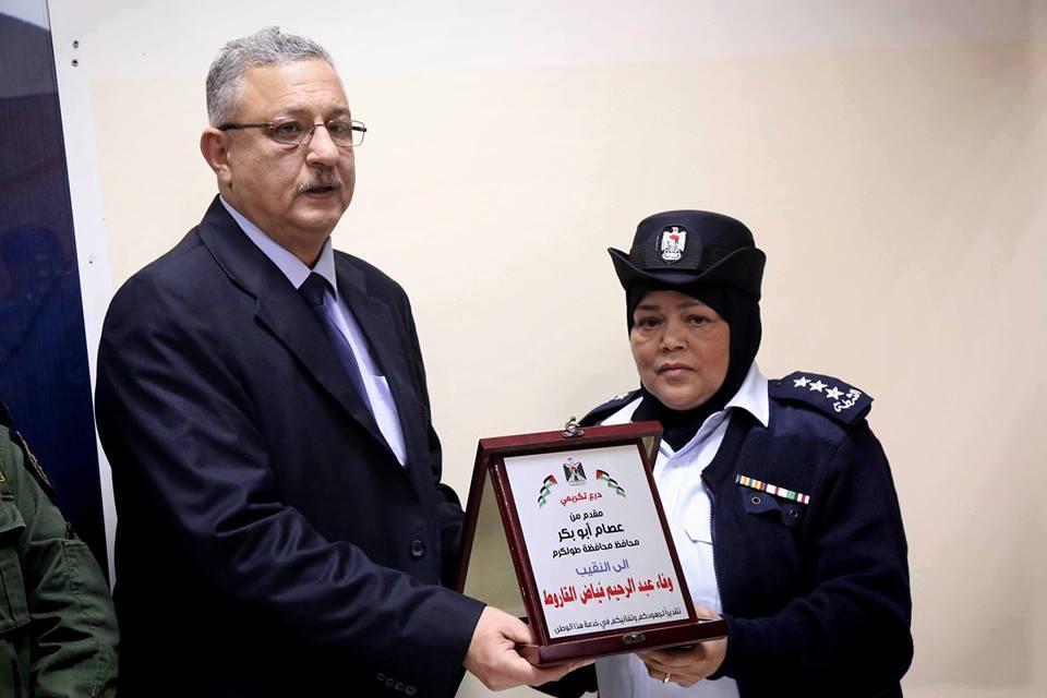 طولكرم- كرم محافظ طولكرم عصام أبو بكر وقائد المنطقة العقيد زاهي سعاده ضباط الشرطة، تقديراً لجهودهم بانقاذ مواطنه حاولت إحراق نفسها الأسبوع الماضي . جاء التكريم بمقر قيادة المنطقة بمشاركة رئيس سلطة جودة البيئة الوزير عدالة الأتيرة، و مدير شرطة طولكرم العقيد عزام جباره، ومدير مديرية الأمن الوقائي العميد محمد زكارنه، ونائب مدير المخابرات العامة المقدم محمد الزيتاوي، ومدير الارتباط العسكري المقدم محمد قندس، وعدد من ممثلي الأجهزة الأمنية.