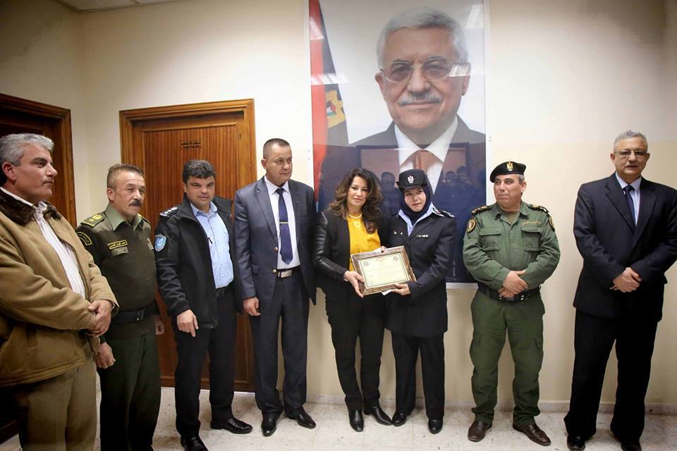 من جانبه تقدم العقيد عزام جباره بالشكر من المحافظ أبو بكر وقائد المنطقة والمؤسسة الأمنية على مبادرة التكريم لضباط الشرطة، موضحاً أن الشرطة والمؤسسة الأمنية في خدمة ابناء شعبنا الفلسطيني في كل مكان، مثنياً على ما قام به الضباط والشرطيات من انقاذ للمواطنة التي حاولت احراق نفسها، منوهاً إلى التدخل السريع للقيام بواجبهم تجاهها وتجاه أي مواطن.