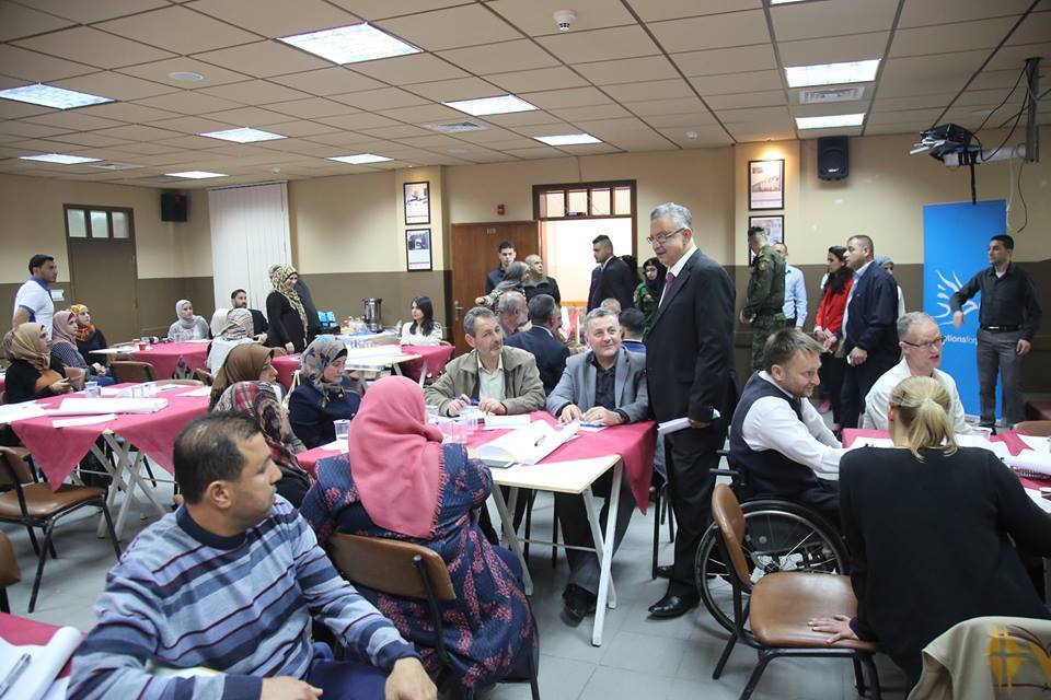 طولكرم-نظم مركز لوجكا للاستشارات وتحت رعاية محافظ طولكرم عصام أبو بكر وبالشراكة مع مؤسسة سمو الأمير فيصل بن الحسين “الاردن” أجيال السلام، وبالتعاون مع وزارة التربية والتعليم العالي وجامعة خضوري، ورشة عمل ضمن برنامج الفريق تحت عنوان:” معاً نحقق ما نريد”. جاء ذلك بحضور نائب قائد المنطقة المقدم علاء الزبن، ورائد ملاك ممثلاً عن مديرية التربية والتعليم بطولكرم، وممثلين عن جامعة خضوري، وورده وملكه سماره منسقات برنامج الفريق وممثلات عن مؤسسة الامير فيصل بن الحسين، وممثلي ومنشطي مدارس تربية جنين – قباطية – طولكرم، ومؤسسة التبادل النقابي / بريطانيا، و المتطوعين من مؤسسة EAPPI من السويد ، كندا ، المانيا، وممثلي المؤسسات المختصة ذات العلاقة.