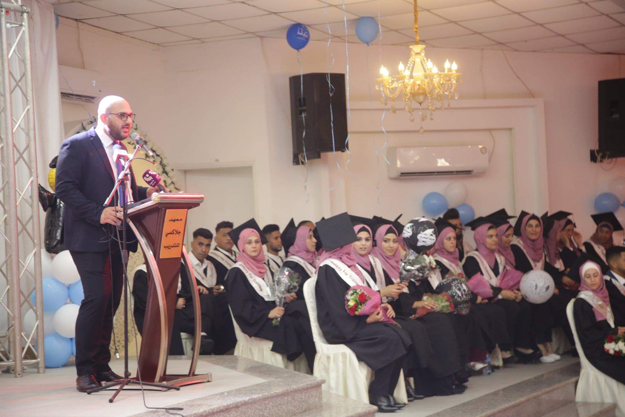 طولكرم – احتفل معهد جلاكسي للتدريب بتخريج الفوج الثالث من طلاب البرامج المهنية وذلك بالتعاون مع التربية والتعليم ومديرية العمل، و تحت رعاية محافظ طولكرم عصام أبو بكر، وبمشاركة فيصل سلامه ممثلا عن المحافظ، وبمشاركة المدير التنفيذي لجلاكسي ماجد باكير، وممثلي المؤسسات الرسمية والاهلية، وحركة فتح وفصائل العمل الوطني، والغرفة التجارية وبلدية طولكرم، وذوي الطلبة الخريجين والجهات المختصة ذات العلاقة.
