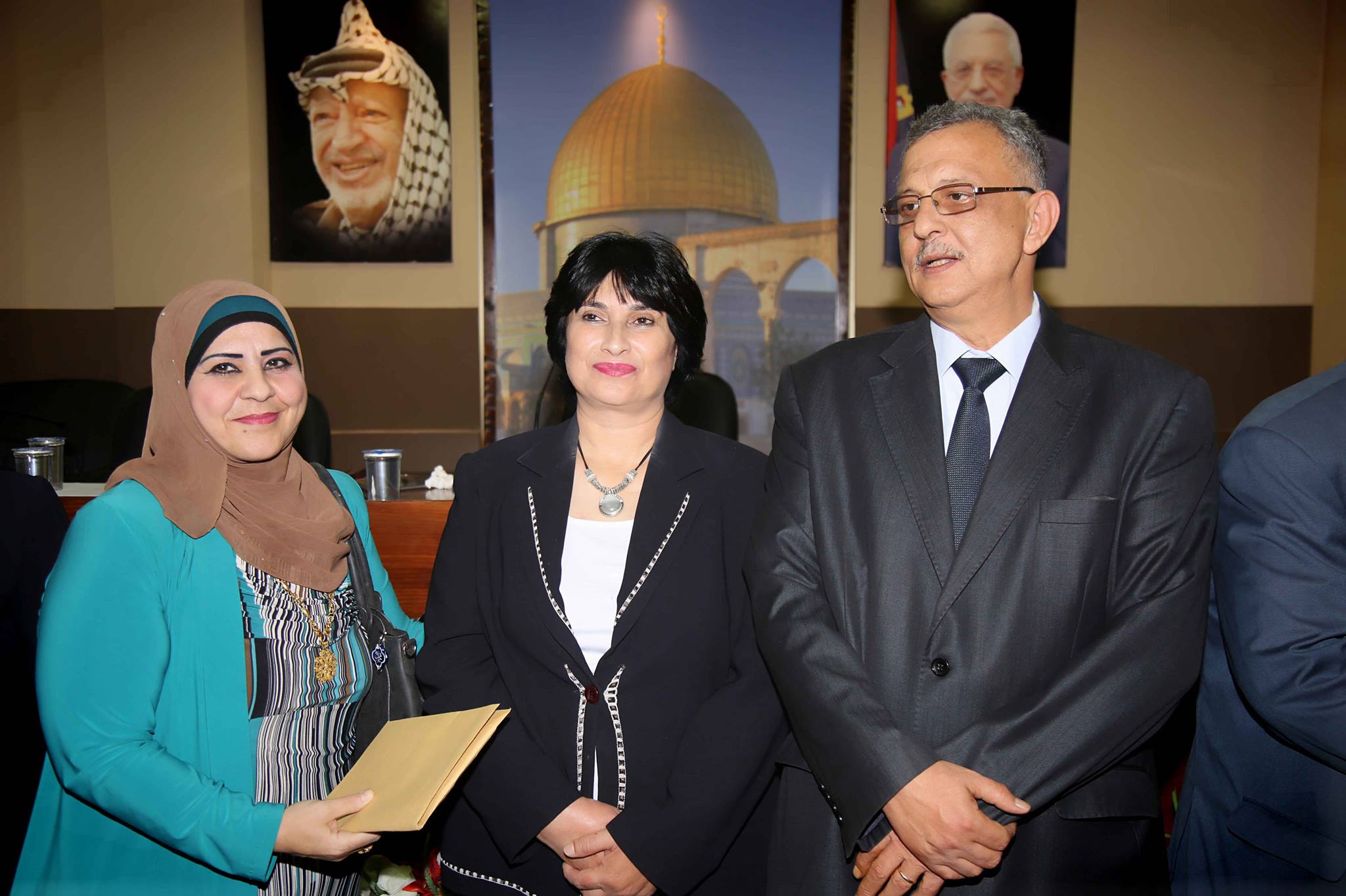 محافظ طولكرم اللواء د. كميل يستقبل وزيرة التنمية والإغاثة د. حمد ويناقشان مجموعة من القضايا