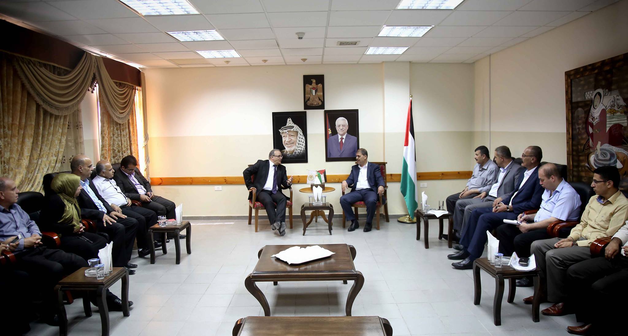 طولكرم-استقبل نائب محافظ طولكرم مصطفى طقاطقة بدار المحافظة وزير التنمية الاجتماعية د. ابراهيم الشاعر والوفد المرافق له، بحضور مدير مديرية التنمية بطولكرم عزت ملوح وكادر المديرية، اضافة لمشاركة جهات الاختصاص بالمحافظة، حيث نقل طقاطقه للوزير الشاعر تحيات المحافظ عصام أبو بكر وتقديره لجهود الوزارة من خلال التعامل مع جميع الحالات المحتاجة بالمحافظة والتي تأتي في صميم الاحتياجات اليومية والمعيشية وصولاً للعمل التنموي، مثمناً توجهات الوزارة وتحولها من تقديم المساعدات إلى ايجاد حالة من التنمية والاعتماد على الذات للفئات المستورة والمحتاجة.