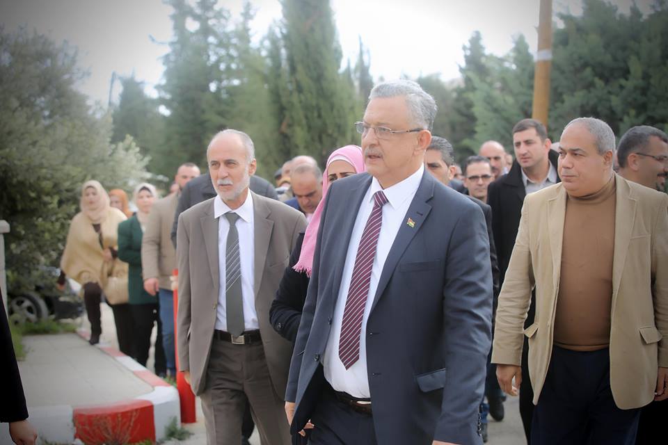 وكان في إستقبال المحافظ أبو بكر والوفد المرافق، مدير فرع جامعة خضوري في العروب د. مهيب أبو لوحه، والكادر الأكاديمي والإداري، ووجهاء الخليل.