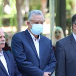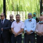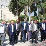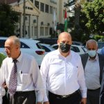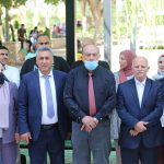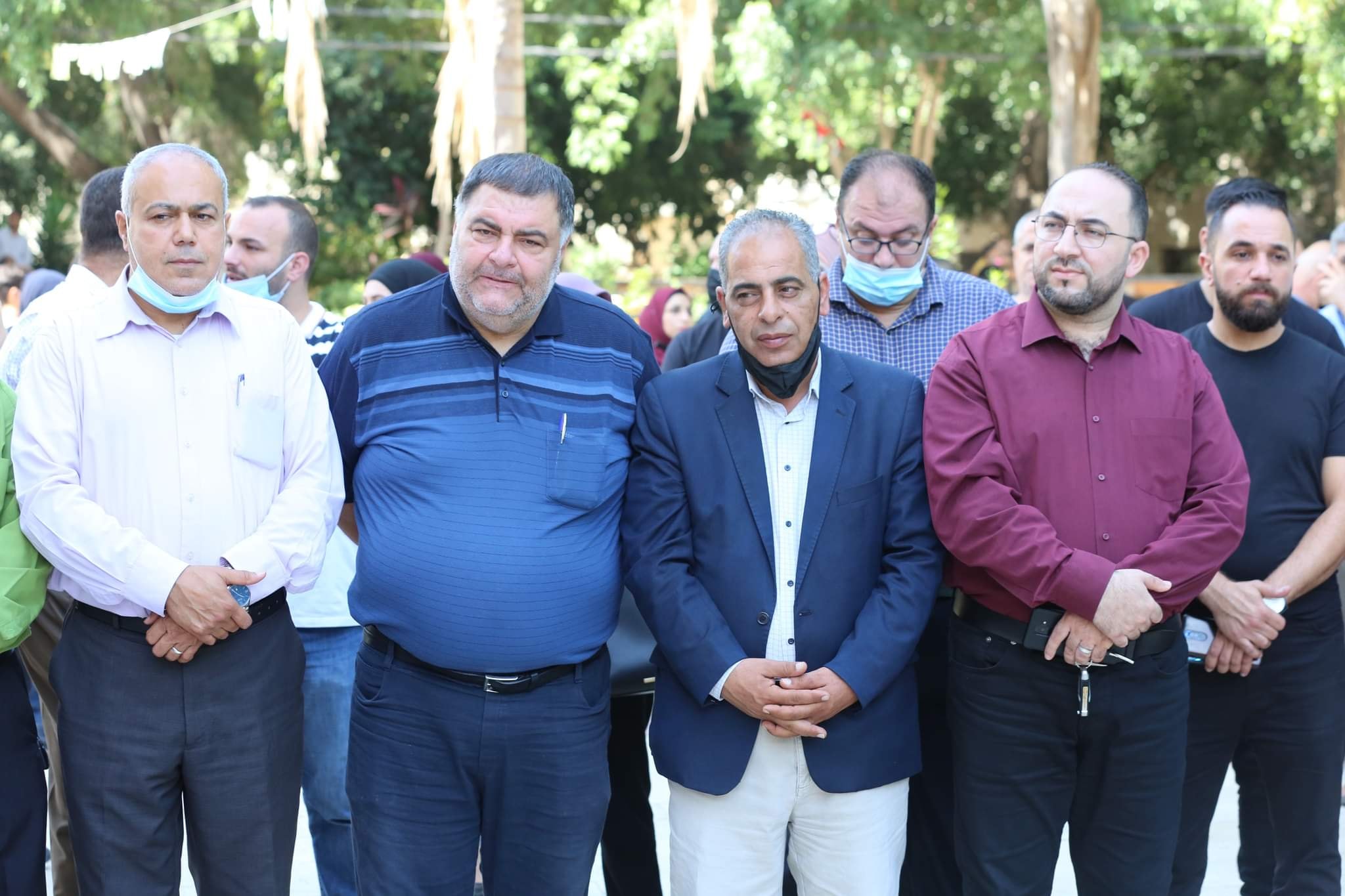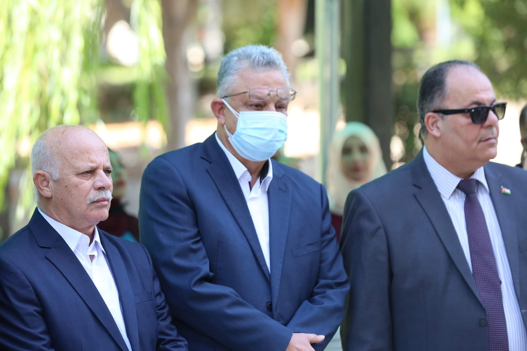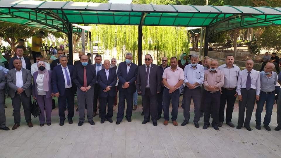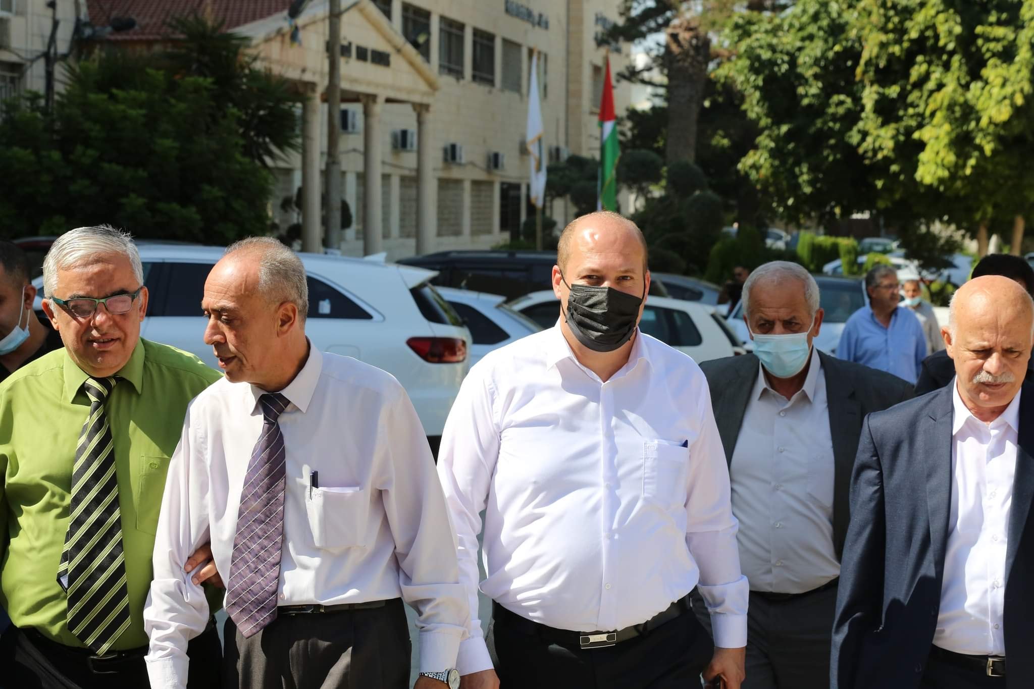 محافظ طولكرم عصام أبو بكر ووزير التعليم العالي والبحث العلمي د. محمود أبو مويس، ورئيس جامعة خضوري د. نور الدين أبو الرب خلال المشاركة بوقفة بمناسبة اليوم العالمي لحماية التعليم الأساسي والجامعي من إعتداءات الإحتلال.