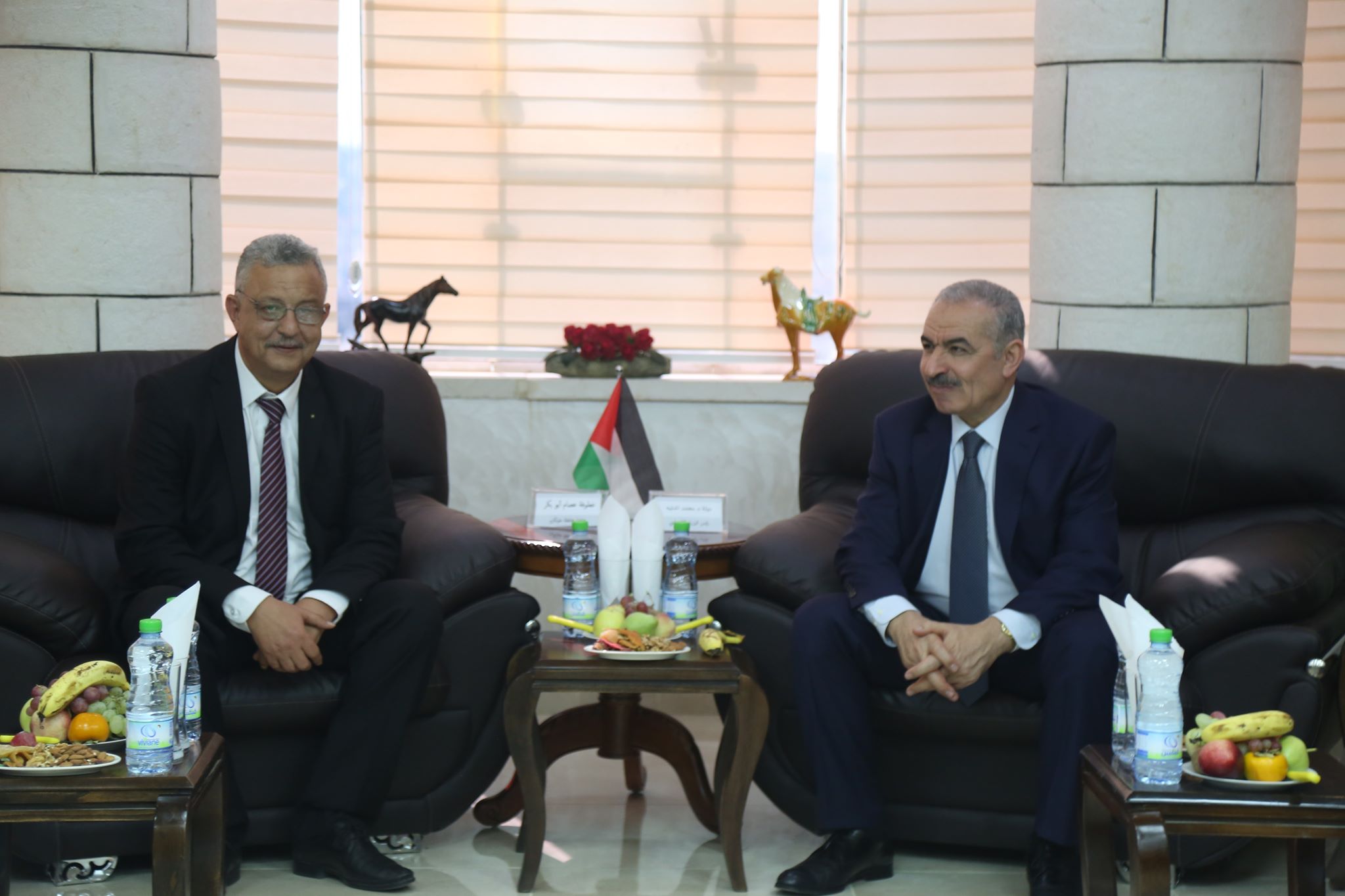 رئيس الوزراء د. محمد إشتيه خلال إفتتاح مشروع الطاقة الشمسية بمقر قيادة منطقة طولكرم، وذلك بمشاركة محافظ طولكرم عصام أبو...