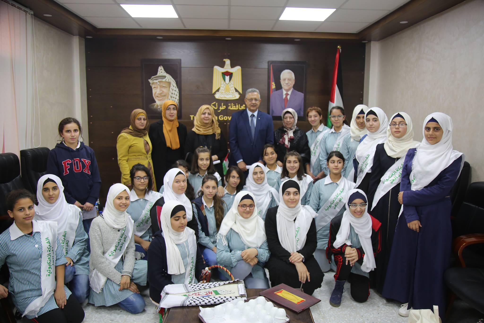 محافظ طولكرم يستقبل مجموعة من طالبات مدرسة بنات فاطمة الزهراء لتقديم عرض عن مبادرة الشبكة العنكبوتية