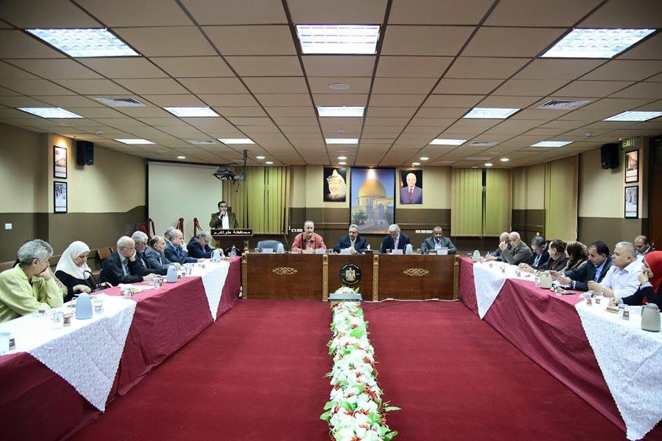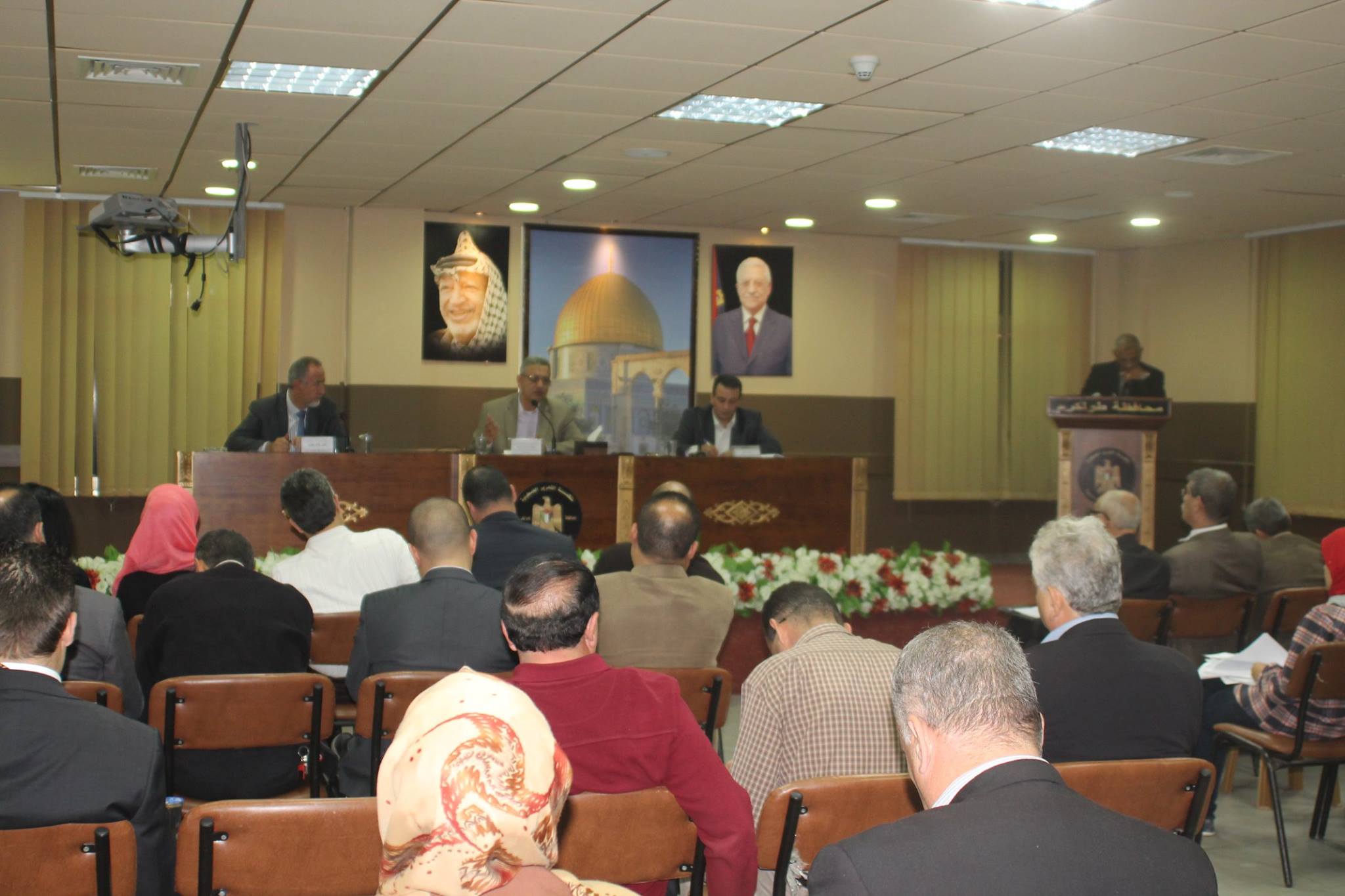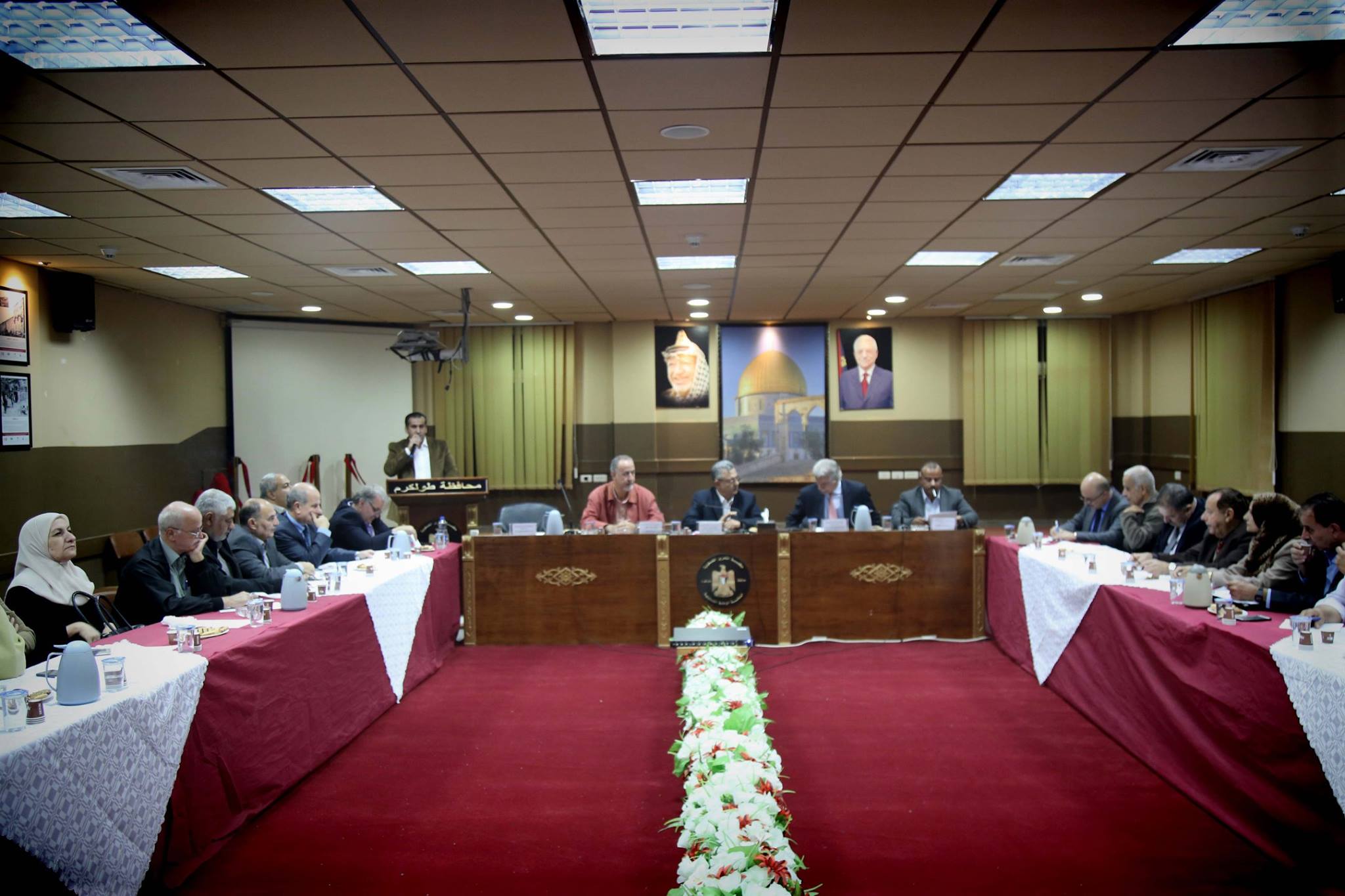 محافظ طولكرم عصام ابو بكر وقائد منطقة طولكرم العقيد ركن محمد حمودة ومدراء الأجهزة الامنية وأمين سر حركة فتح مؤيد...