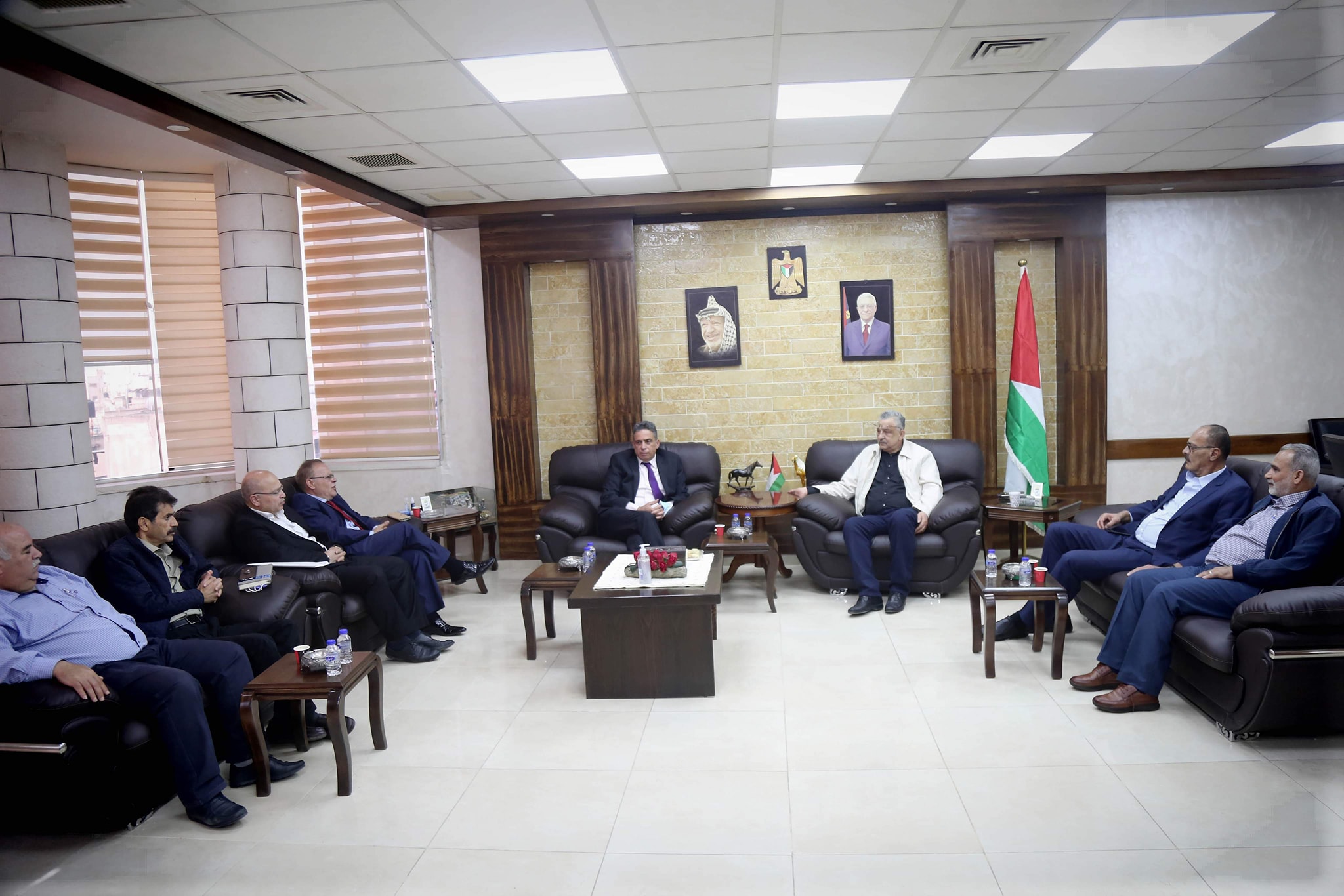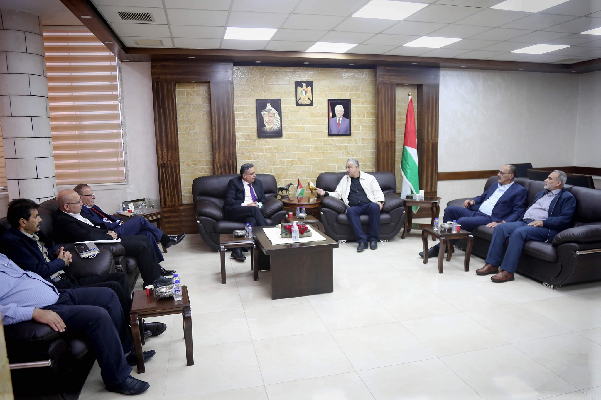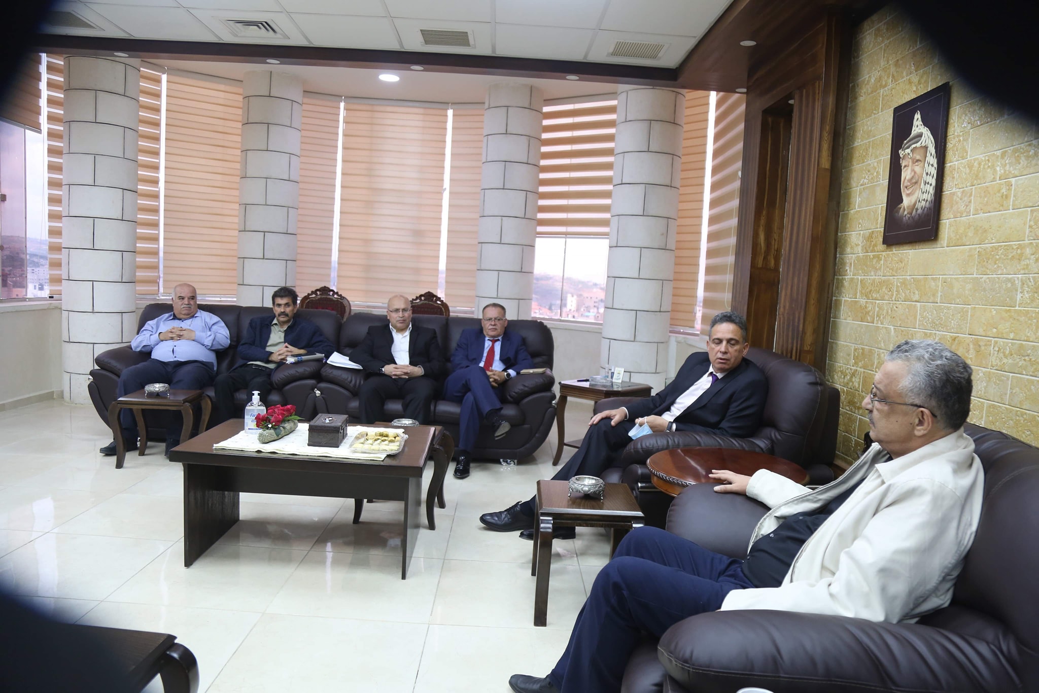المحافظ أبو بكر يستقبل وكيل وزارة الحكم المحلي وبحثان عدداً من القضايا ٢٨-٥-٢٠٢٠ دائرة الإعلام - محافظة طولكرم طولكرم – استقبل محافظ طولكرم عصام أبو بكر في دار المحافظة، وكيل وزارة الحكم المحلي د. توفيق البديري، والوفد المرافق له من الوزارة وبحضور مدير عام الحكم المحلي بطولكرم م. إياد خلف ، ومشاركة أمين سر حركة فتح بطولكرم إياد جراد " أبو الصامد". وأكد المحافظ أبو بكر على دور وزارة الحكم المحلي، والبلديات والمجالس المحلية، مرحباً بوكيل الوزارة د. البديري، مشيراً إلى الإجراءات والتدابير التي اتخذتها لجنة الطوارئ في مواجهة خطر انتشار فيروس كورونا، من خلال ما قامت به الطواقم الطبية، وجهود المؤسسة الأمنية، واللجان المساندة التابعة لحركة فتح، وفصائل العمل الوطني، والبلديات والمجالس المحلية، والمتبرعين، وأهل الخير، ورجال الأعمال، والنقابات والاتحادات، والمبادرات الفردية والمساهمات من المجتمع المحلي، وكافة الشركاء. بدوره نقل د. البديري للمحافظ أبو بكر تحيات وزير الحكم المحلي م. مجدي الصالح، مثنياً على جهود محافظة طولكرم ولجنة الطوارئ وكل الشركاء والجهات المختصة ذات العلاقة في مواجهة خطر هذا الفيروس والحد من انتشاره، حفاظاً على سلامة المواطنين وصحتهم. واستعرض د. البديري مع المحافظ أبو بكر عدداً من المواضيع التي تتعلق بقطاع الحكم المحلي، منوهاً إلى أن زيارة محافظة طولكرم تأتي في إطار الجولات الدورية لمتابعة العمل في كافة المجالات التي بهذا القطاع.